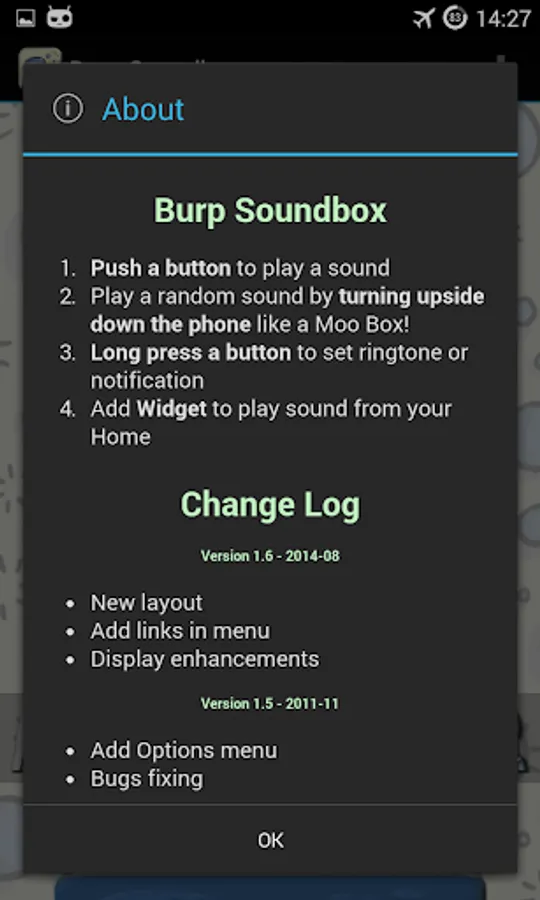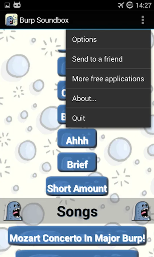 You know the "Moo Box" (a box makes moo when you return it), this application allows you to do the same thing with a hundred of Burps for a lot of fun!