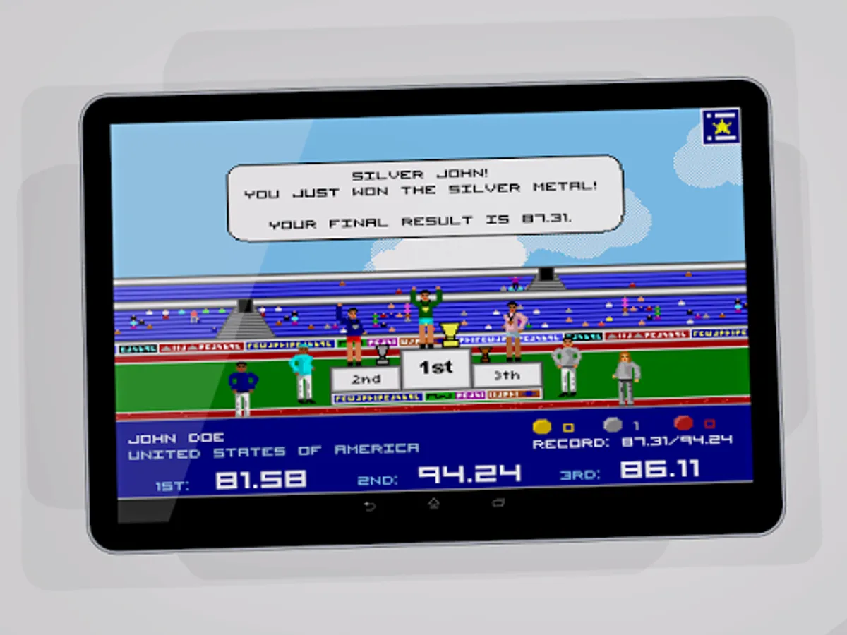 ★ Pixel graphics and 8-bit game music for real retro look and feel; just like it just to be with legendary track & field sport games.