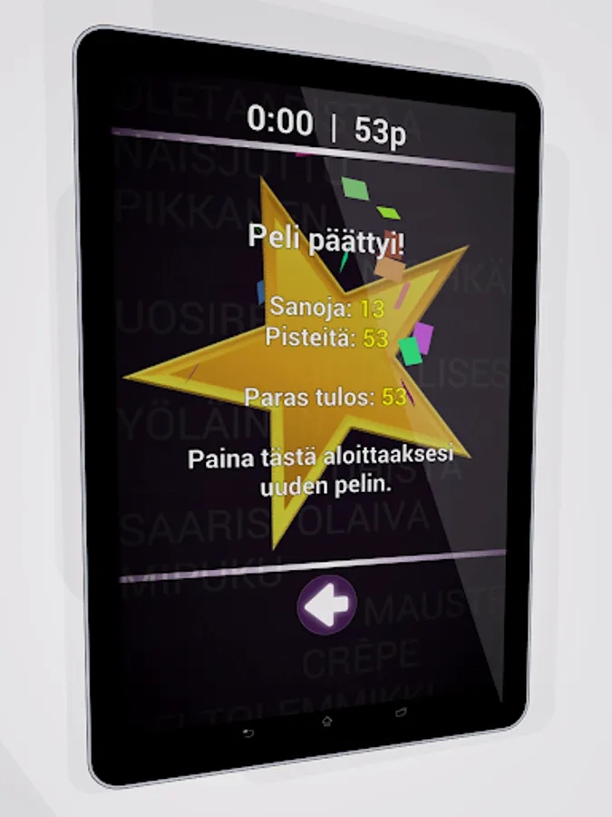 The word game also has a free space where you can look up words in a grid of three different sizes, without any time limit. The situation is saved automatically, so unfinished word game can continue later.