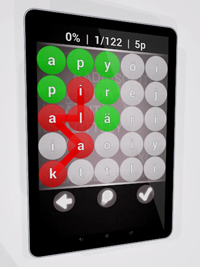 Word of the game is to find as many different words kirjainruudukosta within the time limit. Word has been found, the corresponding letters on the grid are replaced with new characters, so the grid will change as the game progresses.