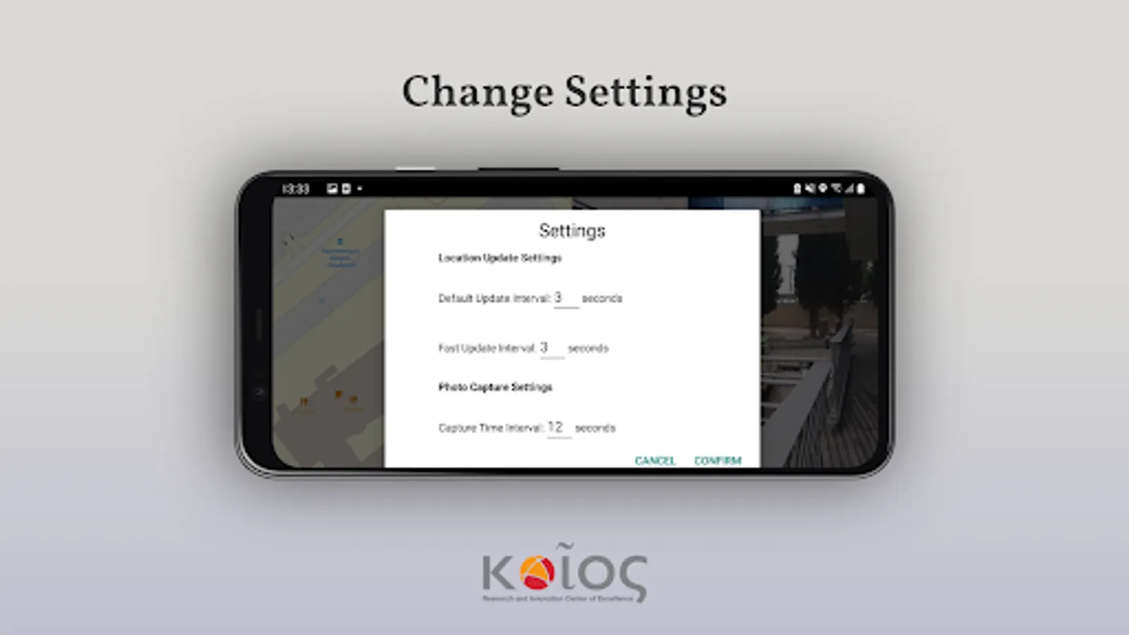 In addition, the app captures photos at the same intervals to provide a visual record of the user's activities and surroundings. The user can set the interval time for location and sensor data collection and photo capture.
