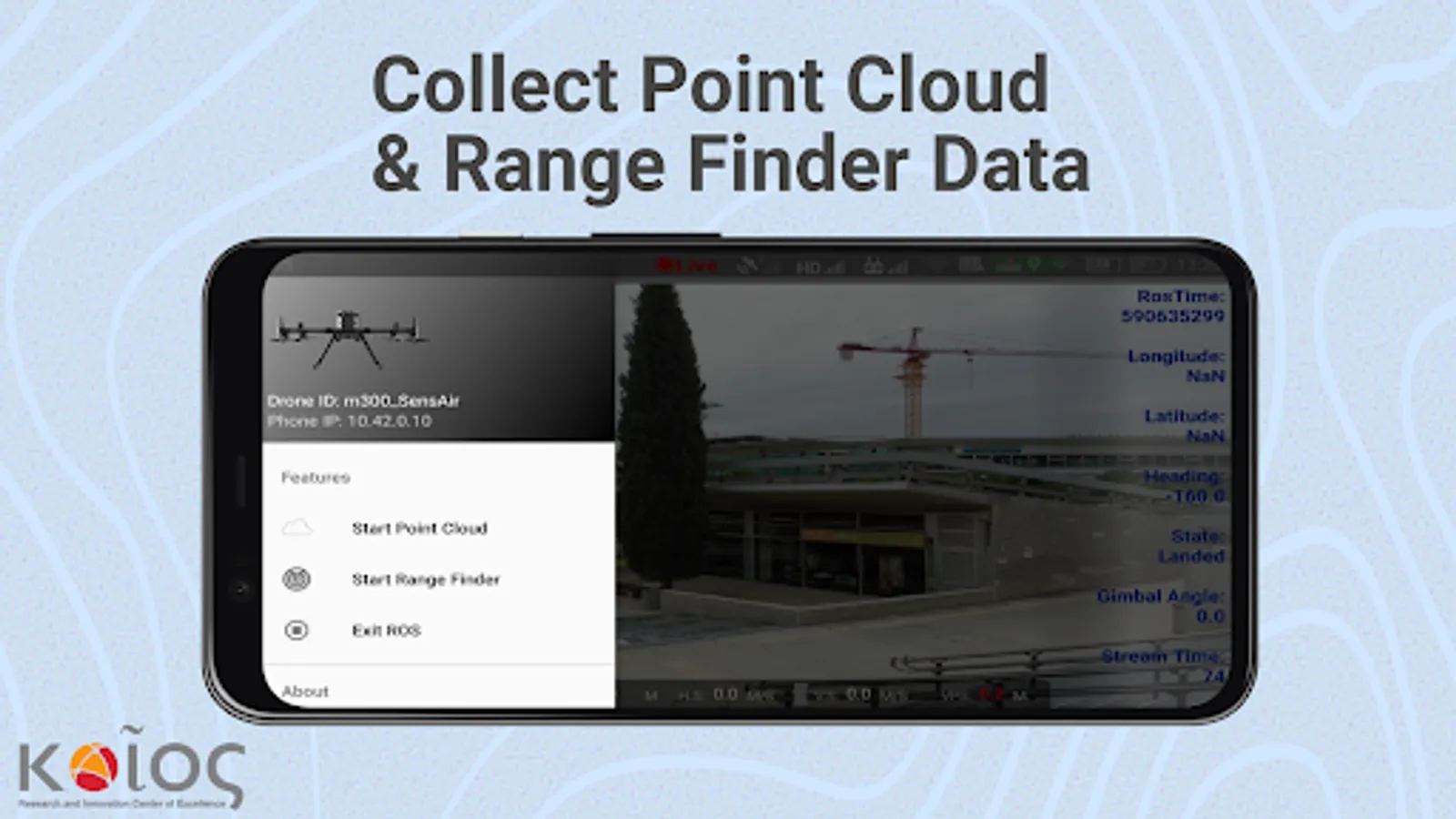 SensAir is a powerful mobile application which connects with a computer and a DJI drone through the Robot Operating System (ROS) framework. The user can easily establish a connection between the drone and the computer, receive live video feed from the drone's L1 and Zenmuse H20T and drone live telemetry data. It allows the user to remotely control the drone by collecting point cloud and range finder data using Zenmuse L1 and H20T.