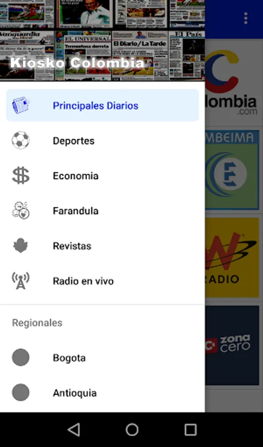 Kiosko Colombia - Colombian newspapers, is an application that brings together the most important written media in Colombia with a variety of sections such as: News, shows, sports, magazines, regional newspapers, live radio, breaking news, social networks and much more.