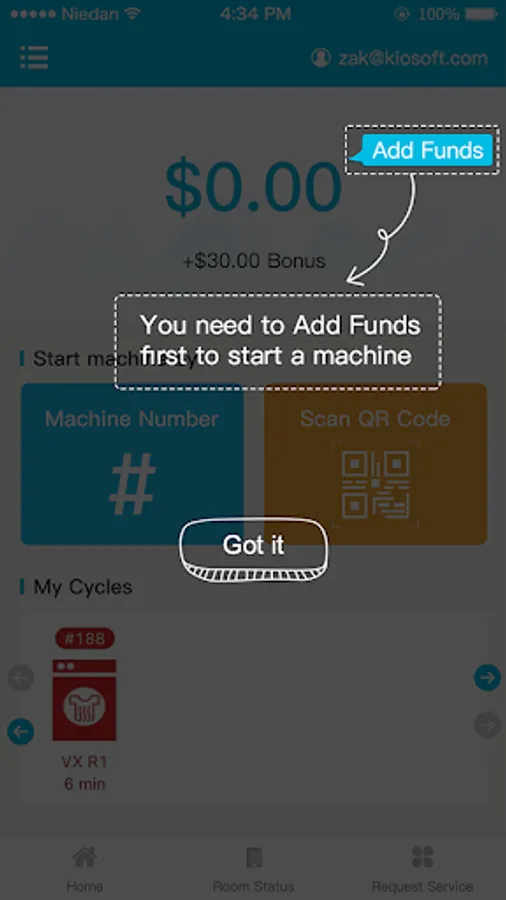 Simply use Clean Cash to purchase credit right from the app, then use that credit for your laundry. Start laundry machines via Bluetooth by scanning QR code or entering the machine number on the machine. Check your card/account balance, and add value to your account for laundry.