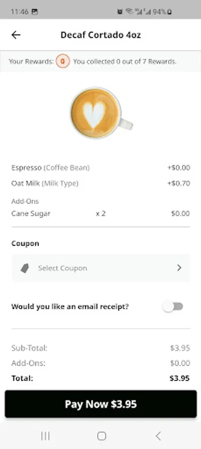 Once your order is entered, simply scan the QR code at the nearest café location and your coffee order will be prepared instantaneously. If you’d like to quickly repeat a previous order, it is simple to select through your order history.