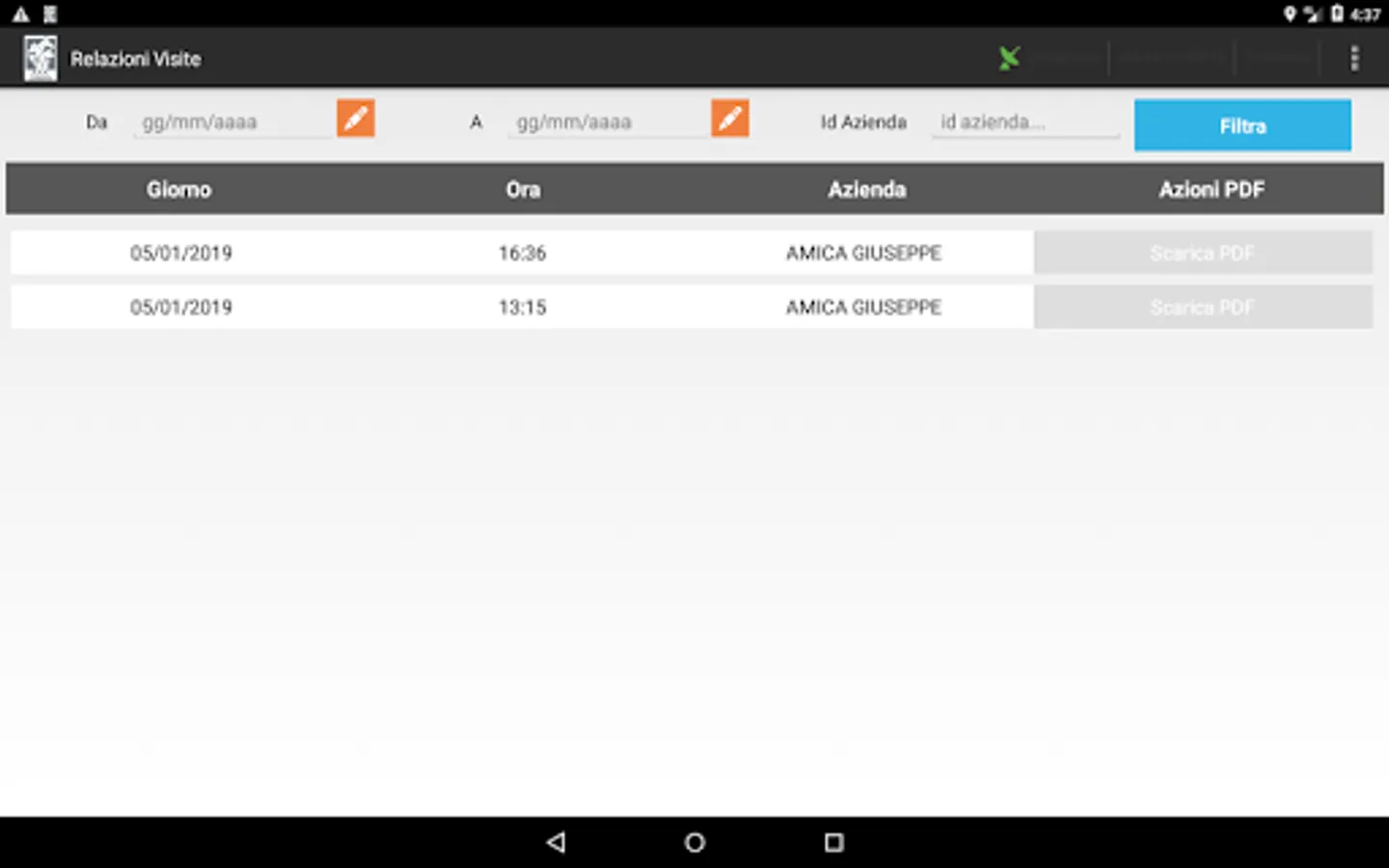 Application for the management of the SATA services of the regional farmers' association of Calabria