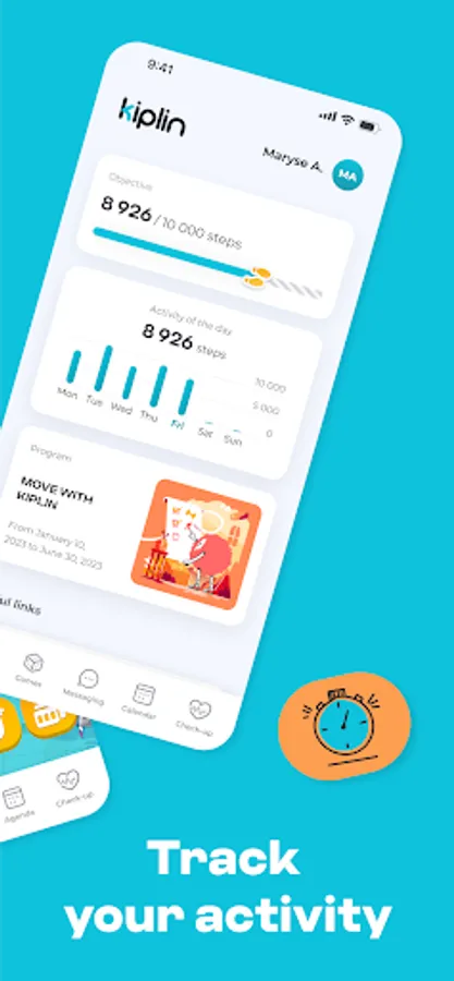 Physical activity has many benefits for your physical and mental health: Kiplin helps you reach your daily goals and change your habits in the long term as part of your health prevention programme. The application allows you to :