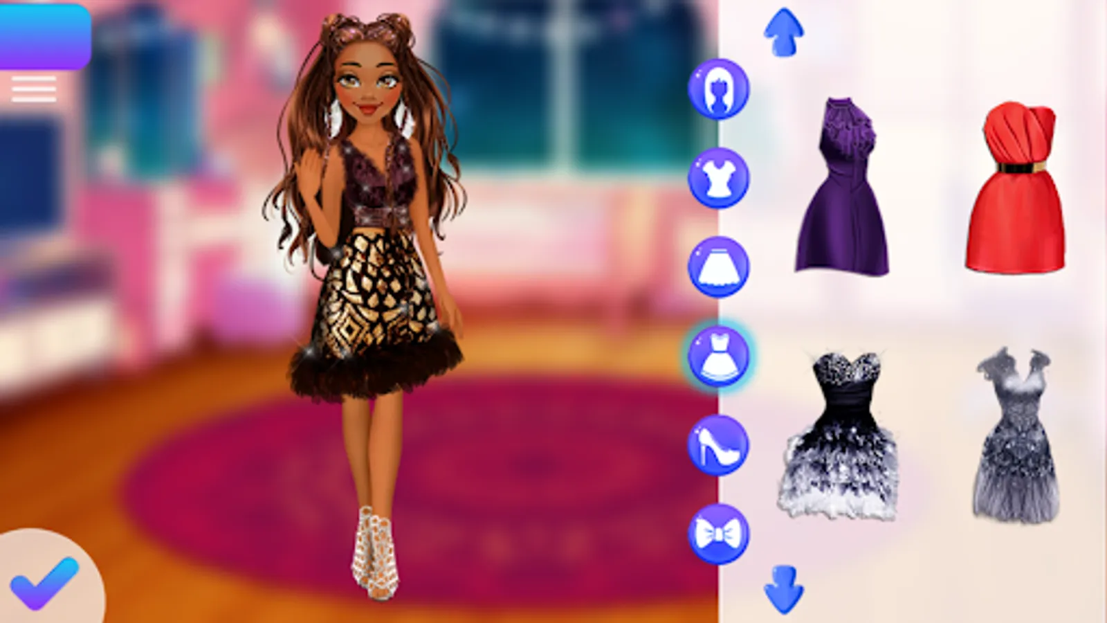 In girls' dress-up and makeup challenge games 2023 without the net, it's time for fun and entertainment in makeup girls' games, in which you will find a lot of fun and challenge in choosing the most beautiful clothes and accessories for the girl, in girls' games there is a girl who needs to choose clothes for multiple times for parties and work time and on the go With girlfriends, in girls games 2023, start choosing suitable clothes for her to go with her friends, choose bright and beautiful colored clothes, then choose the appropriate hairstyle that will be according to your very beautiful taste, in girls’ dress-up and makeup 2023 challenge games without the net, put her earrings in Ears, there are a lot of modern earrings in fashion, you can choose glasses or hats, there are large and colorful hats and small ones, they must be suitable for the clothes and makeup that you chose in girls dress-up games 2023.