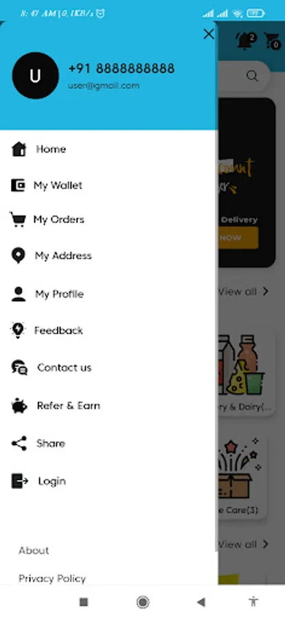 In addition to basic permissions, the Kirana Mart shopping app needs access to other functions on your device for it to support the above features -