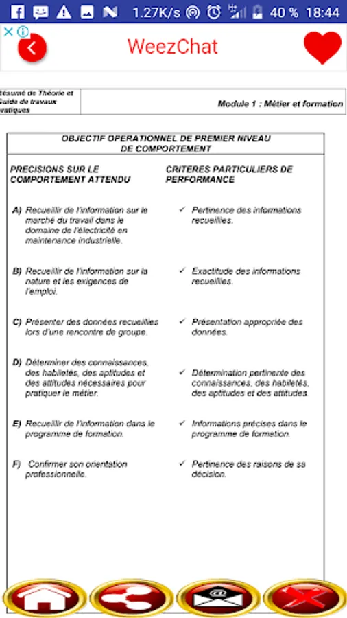 The student will avoid professional orientation errors and confirm their choice, from the first week of the course. The student will receive information that will allow them to establish links between the exercise of their possible trade and the apprenticeships provided for in the program. In addition, in this module, the student will be made aware of the many health and safety risks that metal construction represents; the use of flammable or toxic products, the transport of heavy objects, work on mechanical and electrical equipment, the use of dangerous tools.
