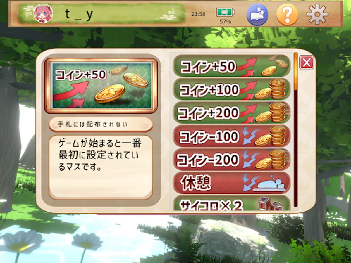 This game is a game where you can play sugoroku online. Unlike ordinary sugoroku, you can rewrite the effect of the square using your own "mass card". You can place them in your favor, or you can place cards to trap your opponent. How you use your cards will make a big difference in the game!