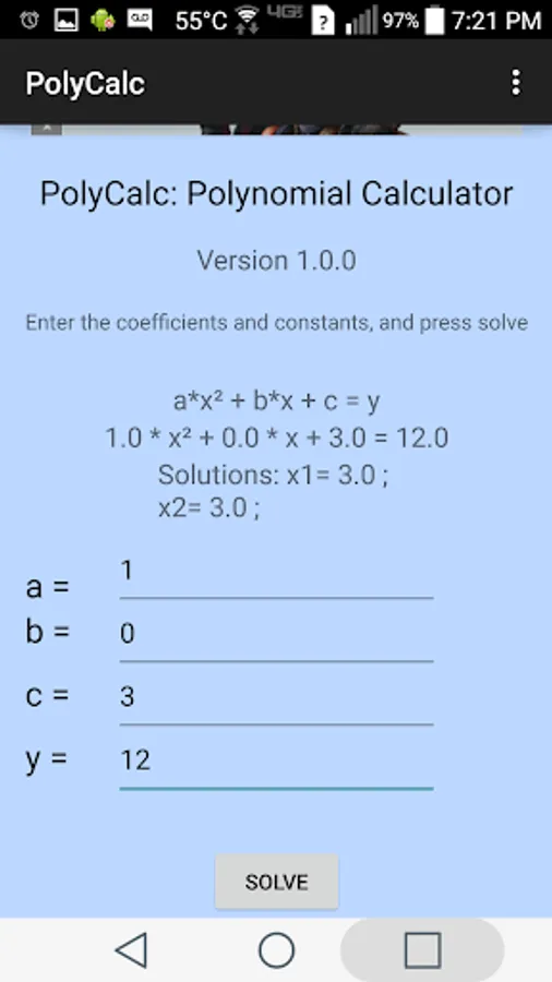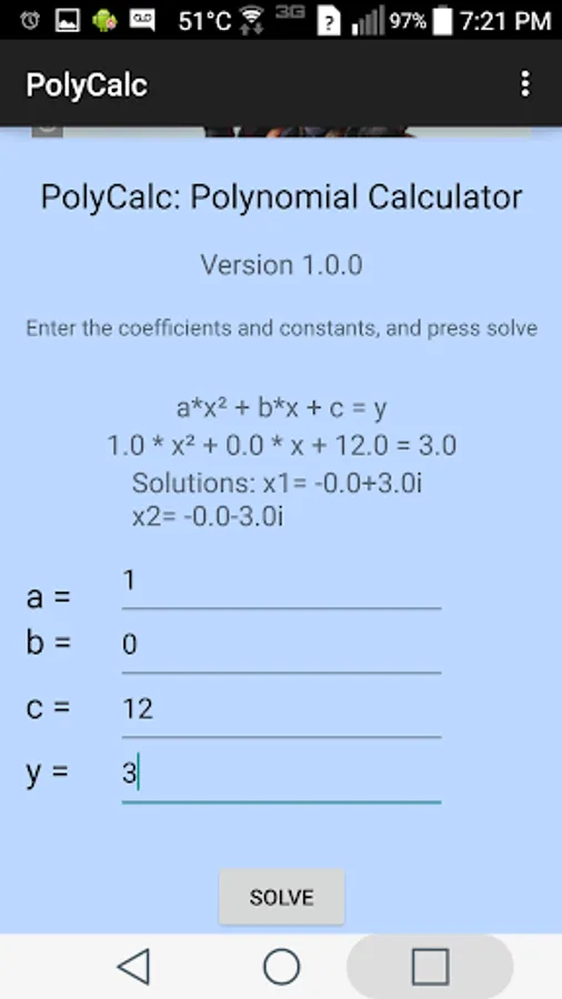 PolyCalc solves quadratic, linear, proportional equations, for both real and complex solutions.