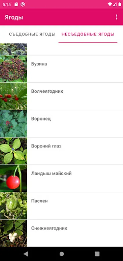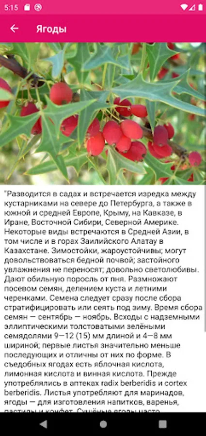 Each berry in the list has its own page with a large illustration and description.