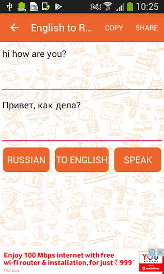 With this application your requirement of English to Russian conversion and Russian to English conversion will easily be fulfilled. You will be able to convert any tough word once you start using this English to Russian translation application .You will be able to understand the Russian equivalent of the word using this English to Russian translator. One can also consider this application as English to Russian dictionary that can help one improve a lot. As this is a Russian to English and English to Russian typewriter, you will easily be able to use it. A lot of people have taken benefit from this English to Russian writing app and then used it successfully thereafter. Once you start using this application you will surely be able to convert English to Russian and Russian to English. You will also be able to learn English grammar and Russian grammar as you keep using it. For those who want to learn English speaking or Russian speaking this application is the best. You will be able to learn the language in ways that you have never even thought of. You will easily be able to understand the words in English and words of Russian once you start using our application.