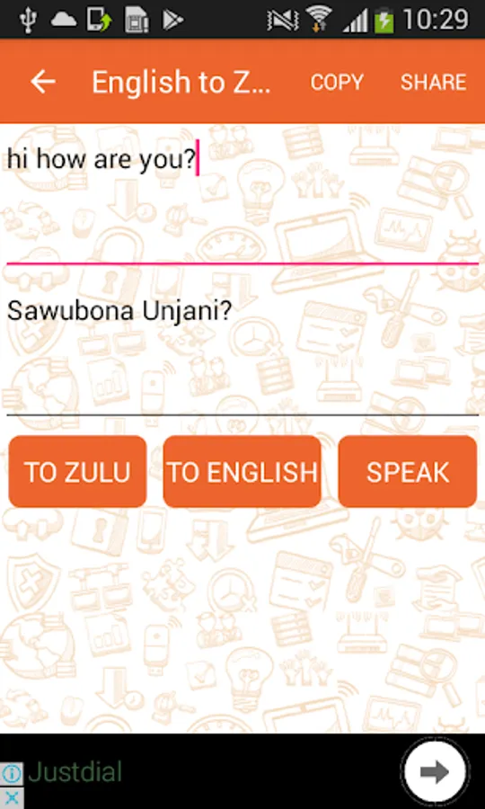 With this application your requirement of English to Zulu conversion and Zulu to English conversion will easily be fulfilled. You will be able to convert any tough word once you start using this English to Zulu translation application .You will be able to understand the Zulu equivalent of the word using this English to Zulu translator. One can also consider this application as English to Zulu dictionary that can help one improve a lot. As this is a Zulu to English and English to Zulu typewriter, you will easily be able to use it. A lot of people have taken benefit from this English to Zulu writing app and then used it successfully thereafter. Once you start using this application you will surely be able to convert English to Zulu and Zulu to English. You will also be able to learn English grammar and Zulu grammar as you keep using it. For those who want to learn English speaking or Zulu speaking this application is the best. You will be able to learn the language in ways that you have never even thought of. You will easily be able to understand the words in English and words of Zulu once you start using our application.