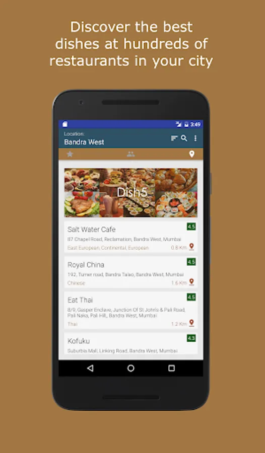 Dish5 is unlike any food app before it. You choose the food dish (Biryani, Tandoori, Pizza, etc) and our community of foodies shares the secret restaurants spread across Mumbai that serve the tastiest version.