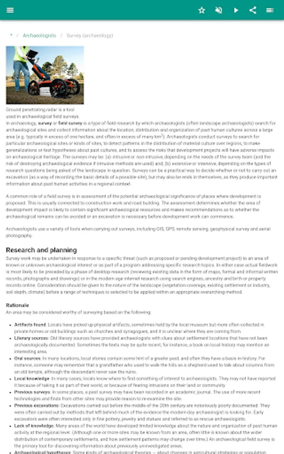 The application contains a description of archaeology.