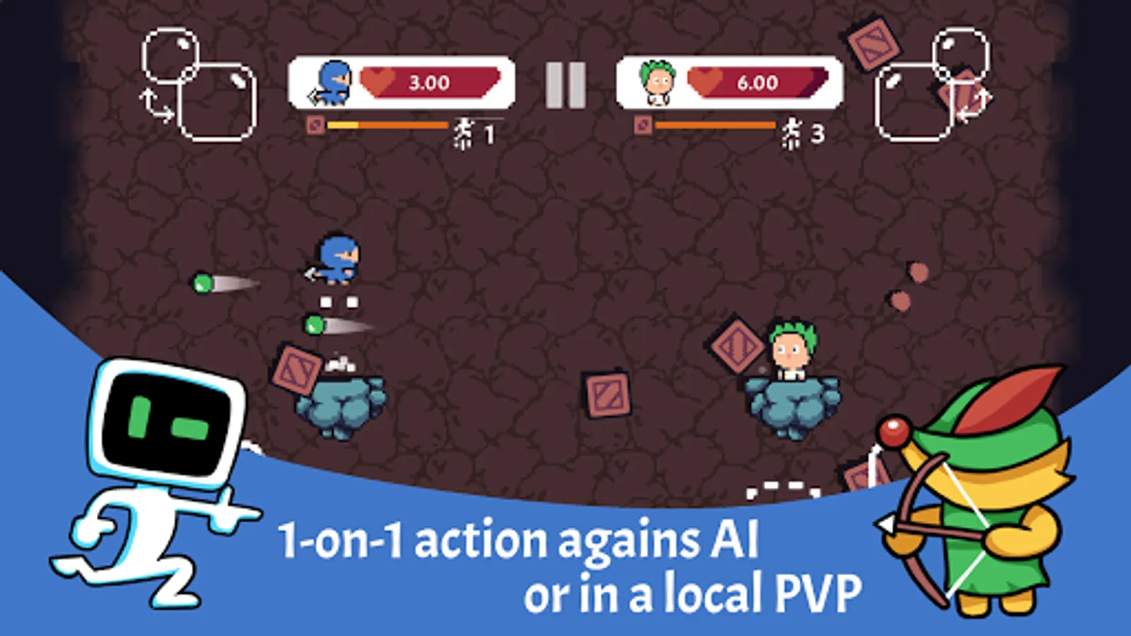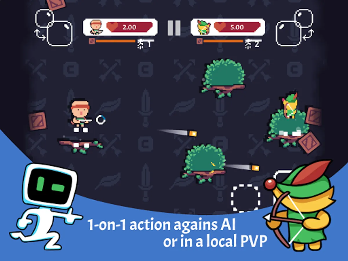 Enter the action-packed world of ANYCRATE, the thrilling 1v1 arcade game for solo play against the AI or local PvP battles with a friend! Join forces with your furry pet and take down aliens and monsters by jumping, shooting, dodging, and breaking crates to unlock ultimate power-ups!