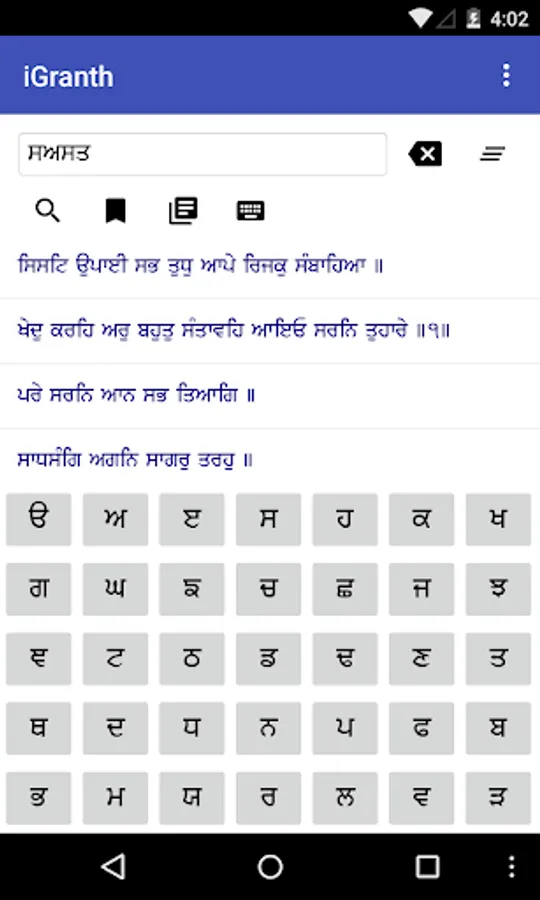 iGranth is a Gurbani Searcher app that let's you search SGGS, Bhai Gurdas Ji Varaan, read Nitnem Banis and SGGS.