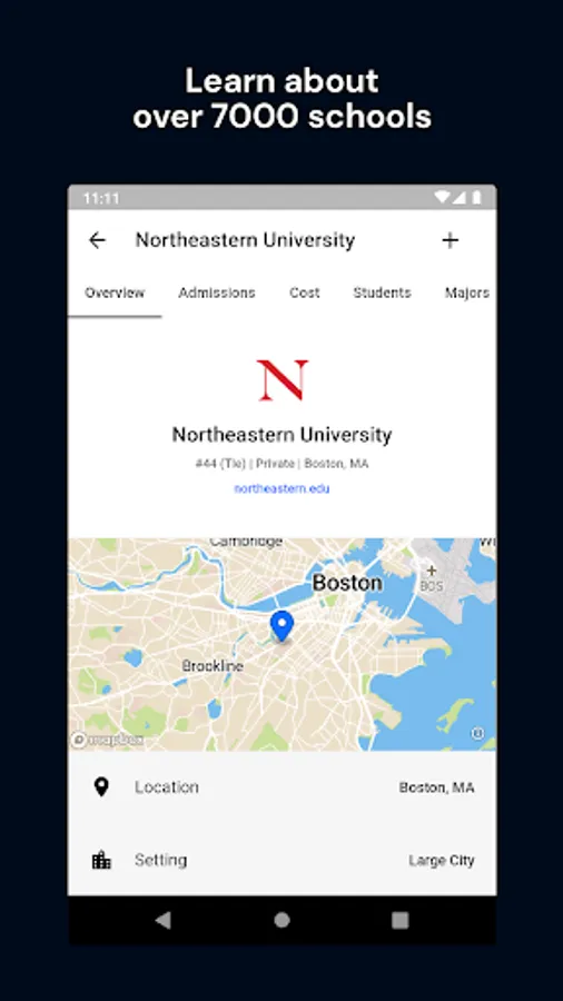 Find all the information you need about each colleges' cost, location, student demographics, admissions, majors, and more.