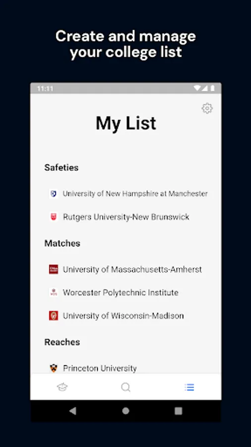 Organize your choices into reaches, matches, or safeties, and easily reorder within each category.