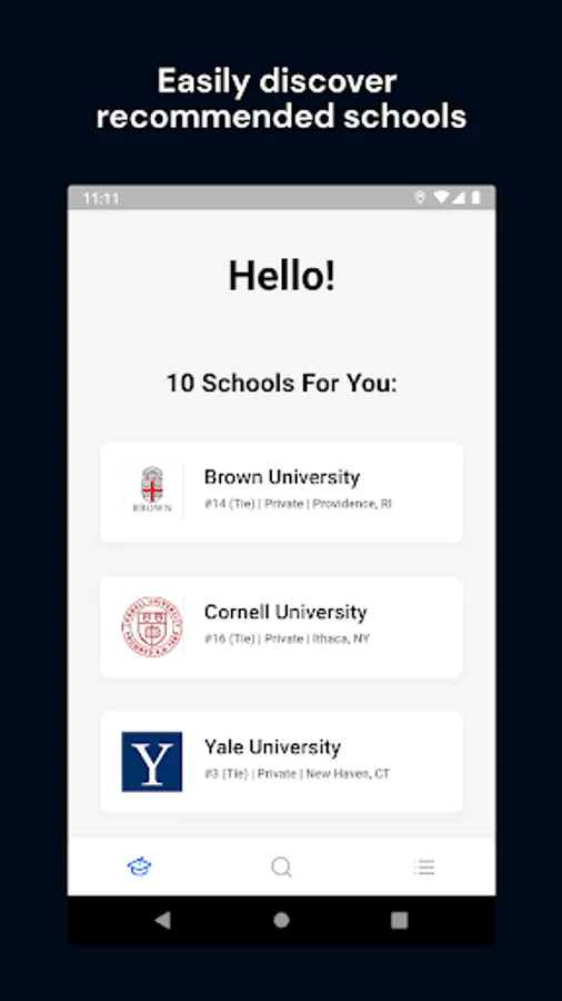 Using your preferences and statistics, new colleges will be recommended to you every day to help broaden your choices.