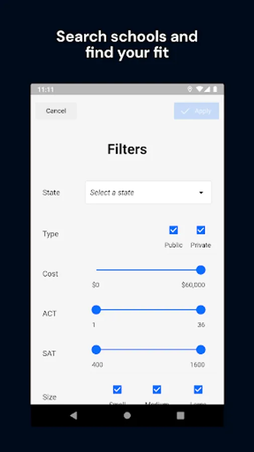 In addition to fast college searching, easily narrow down your choices with multiple filters.