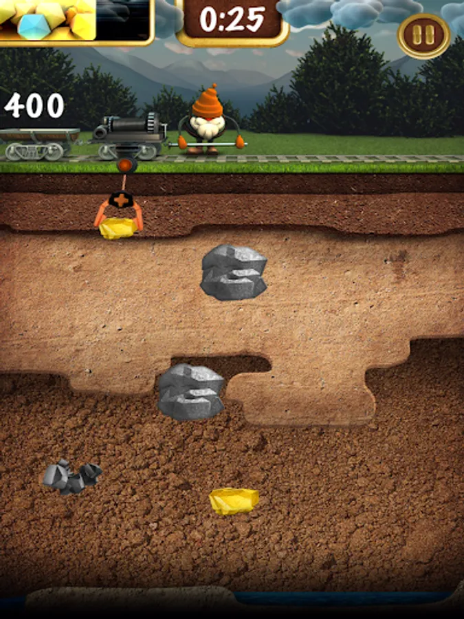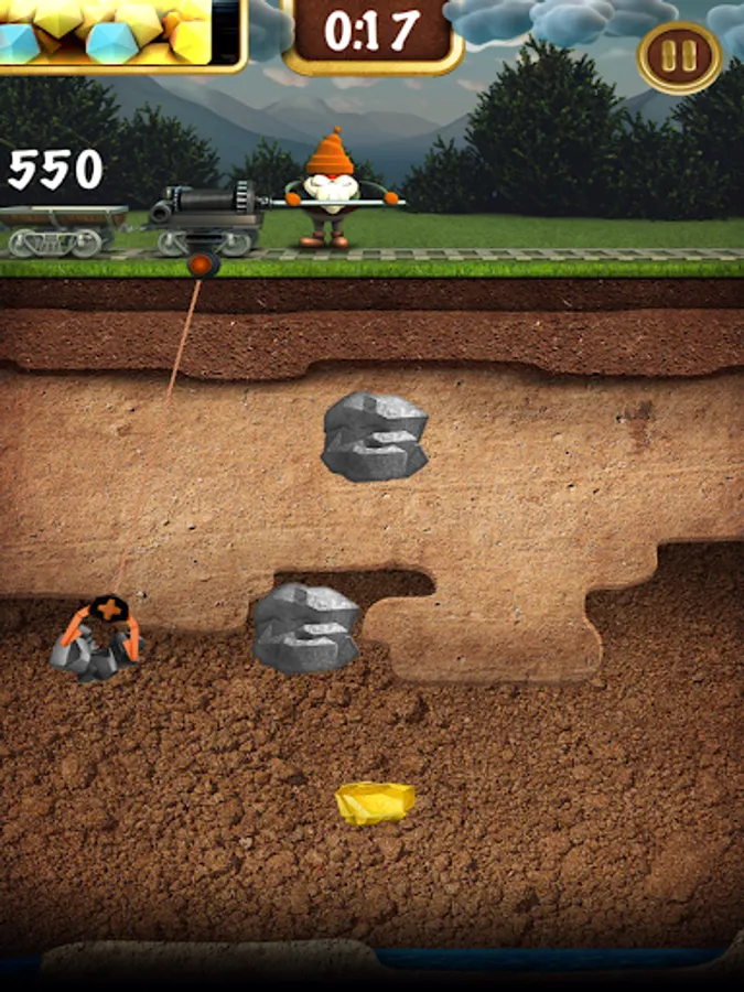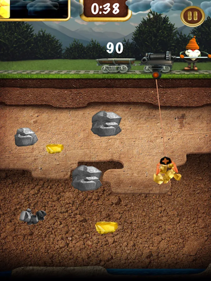 Help Fred to collect all gold items scattered between useless stones by using winch. Move your gold-miner along the railroad in order to find the best position, aim at the nugget and grab it! Your hook will dig straight into the ground and the mineral (copper, iron, silver, gem or something else) will be moved with the rope to you. Fill Fred’s cart and keep on mining on the next levels.