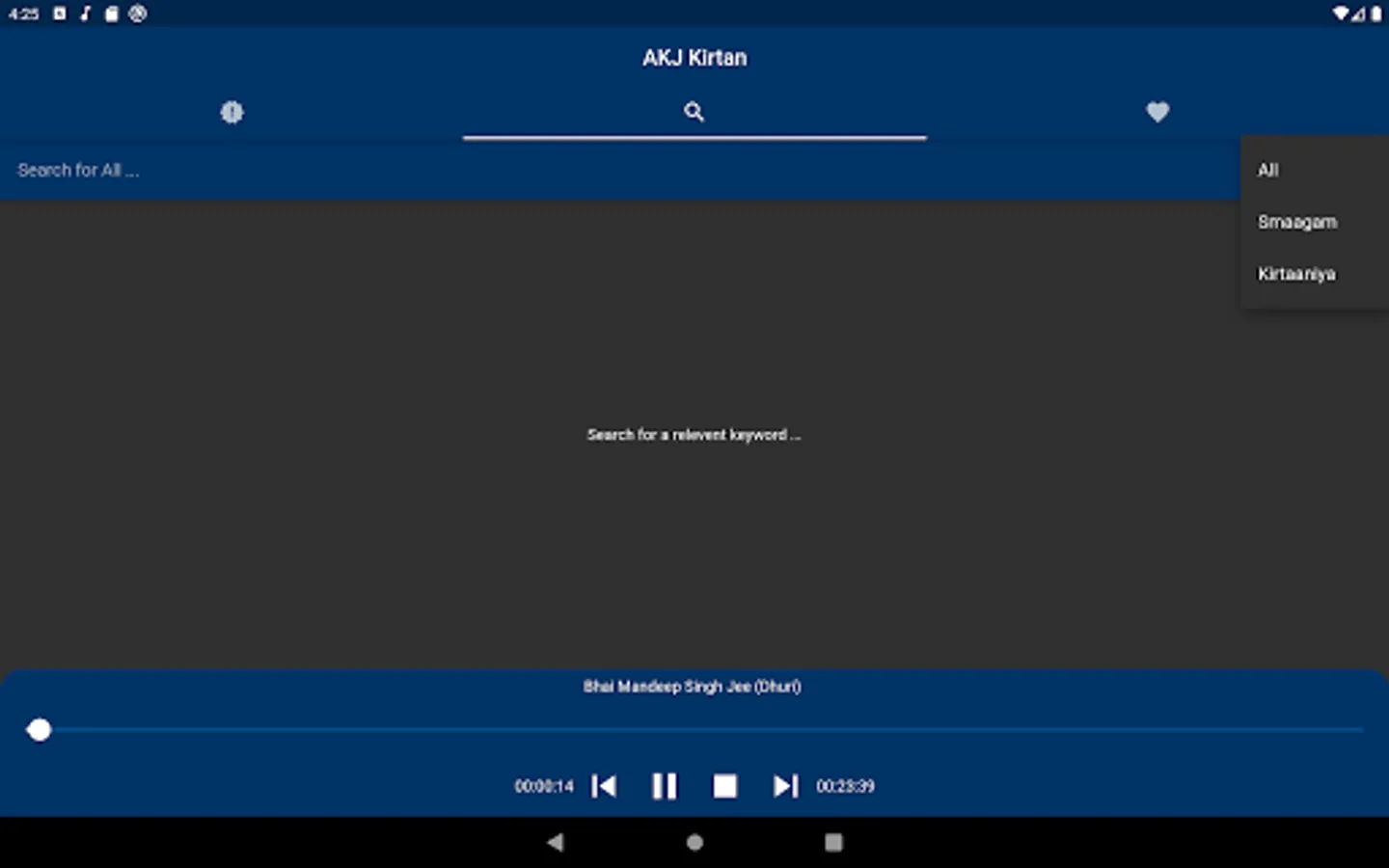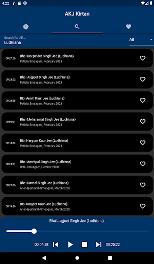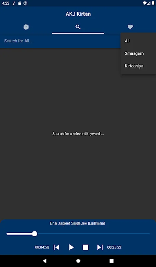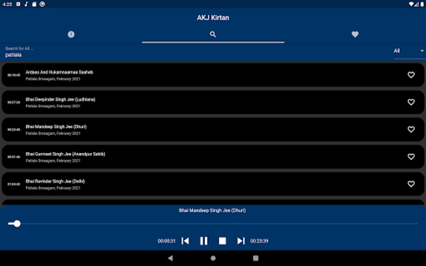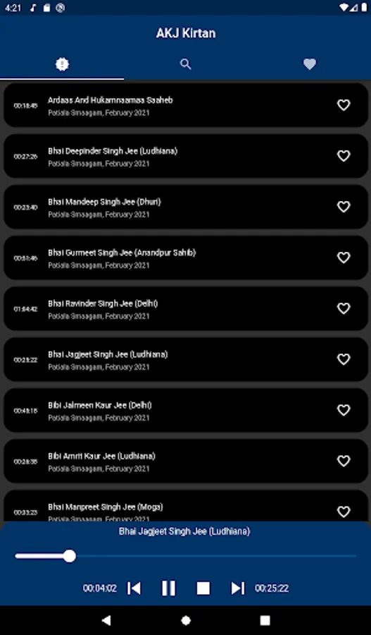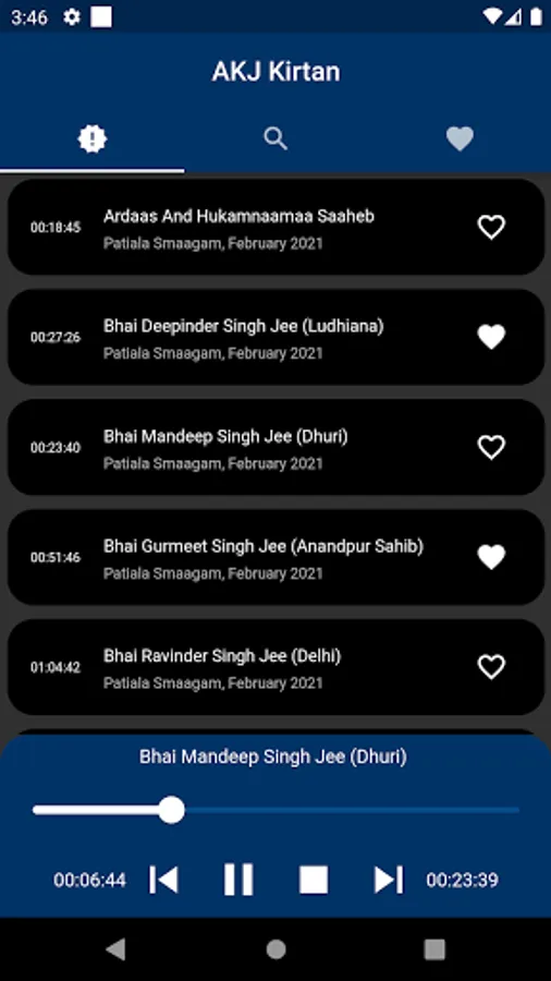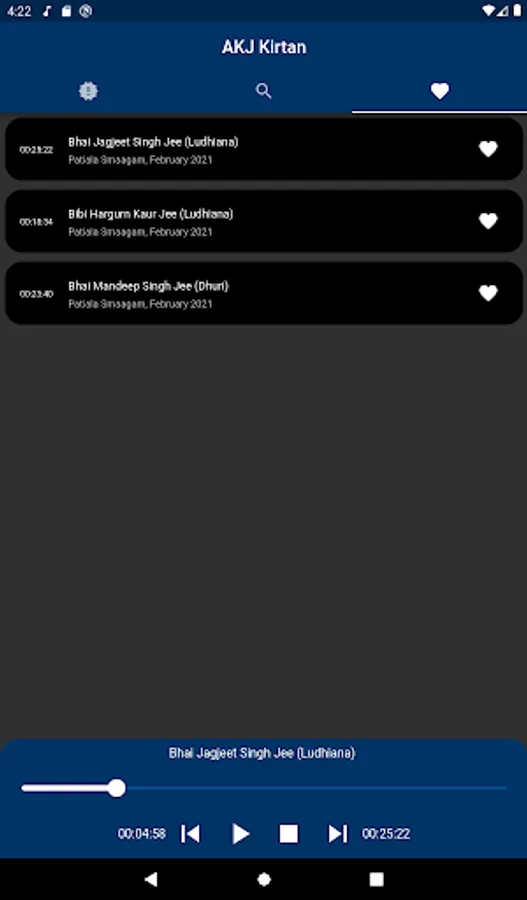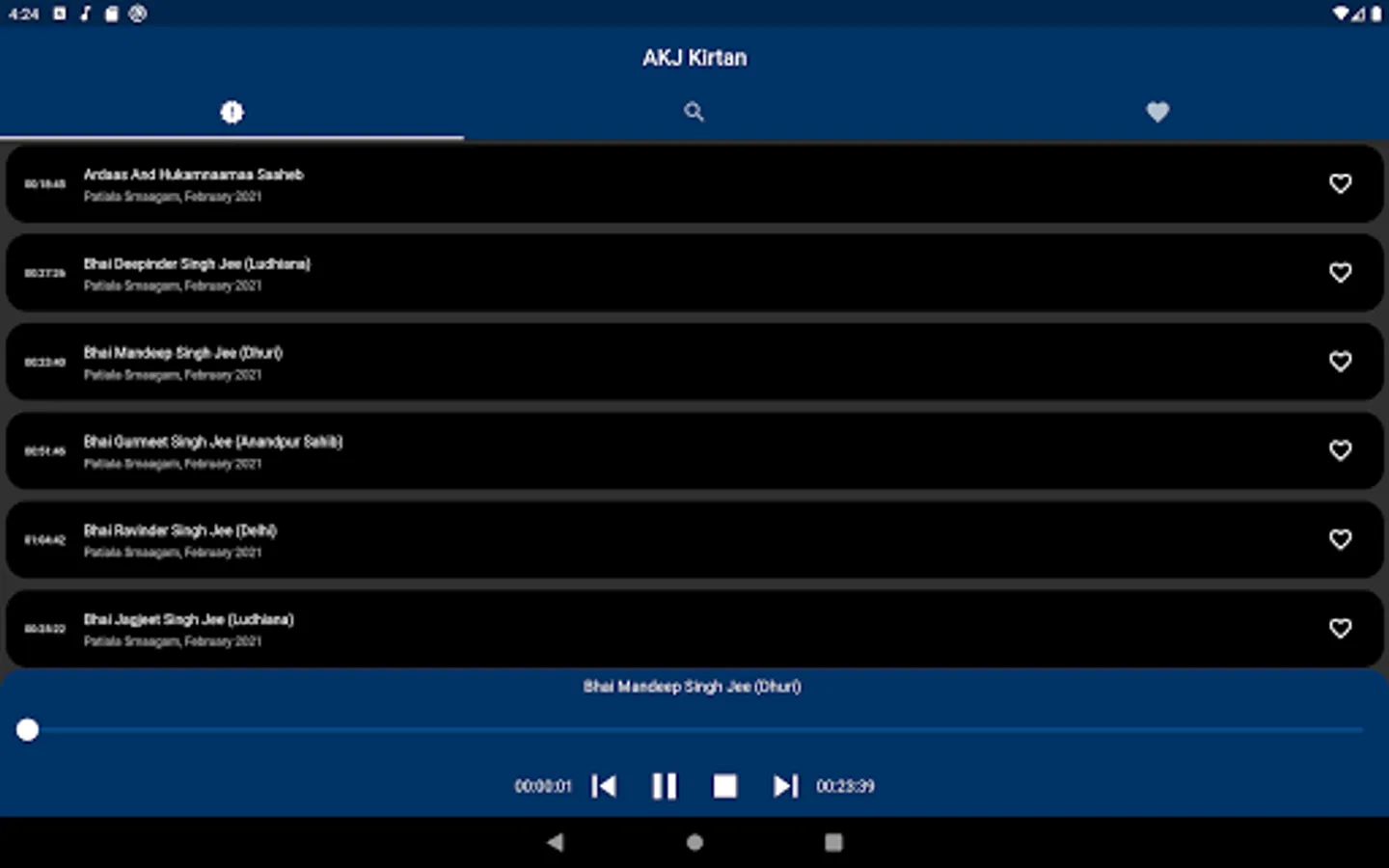 A Kirtan App which fetches data from akj.org. You can Listen to kirtan smaagams from various Gurudwaras.