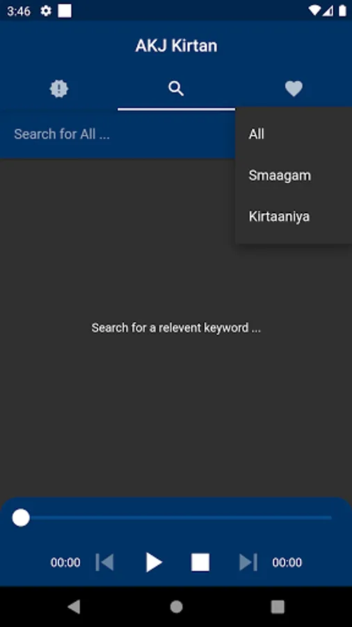 You can search any smaagam from a long list of files based on three categories such as smaagam , Kirtaaniya, or location.