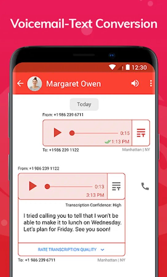 - Voicemail Transcription: Convert voicemail to text with transcription and read them on the go.