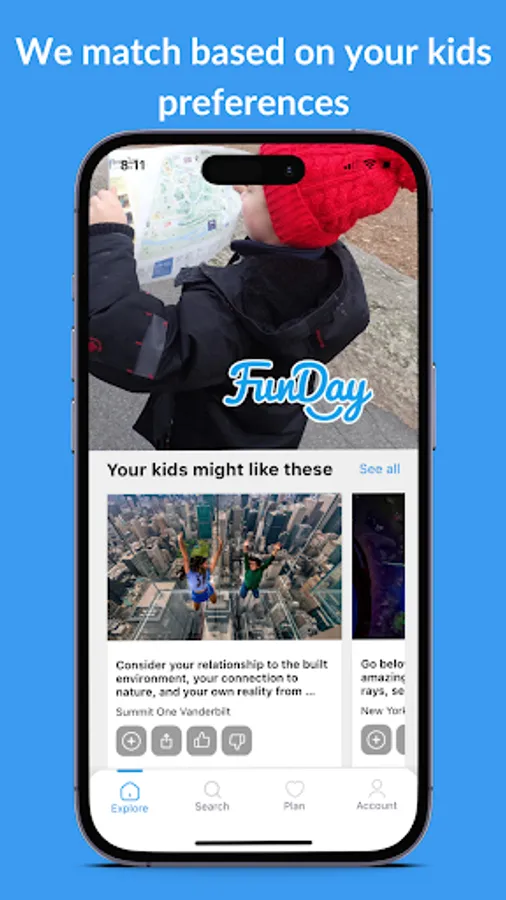 FunDay helps parents plan family-friendly trips in New York City. It uses artificial intelligence to match your family with activities that you and your kids will love and with full-day plans.
