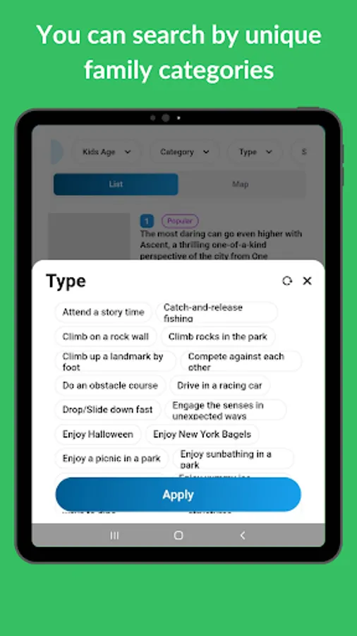 The app will automatically find the best events and activities and it will also provide full-day, fully customizable itineraries to spend the day with your children.
