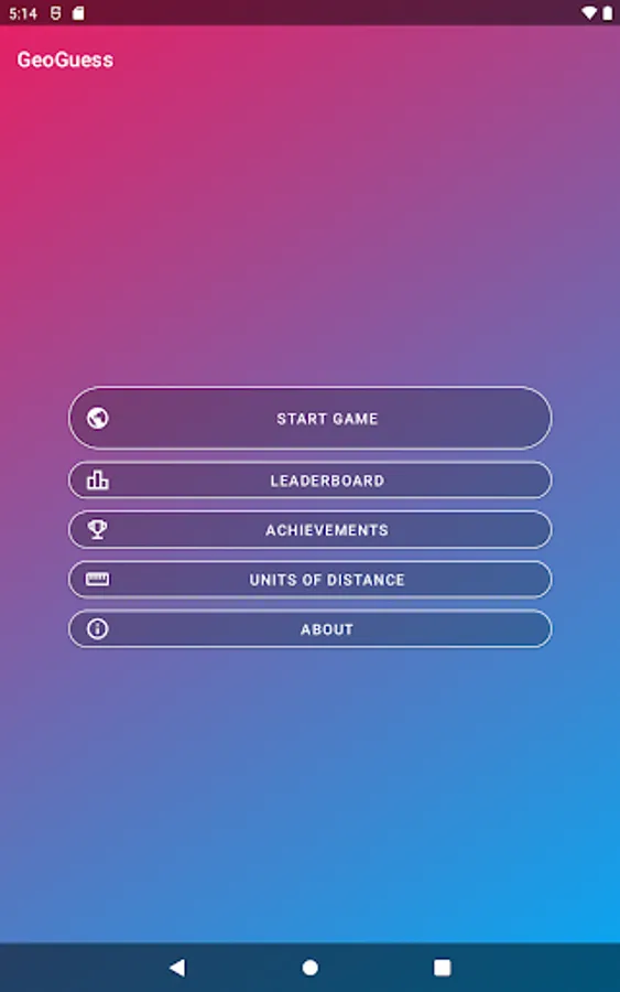GeoGuess is a game where you are placed in a random panorama location and you have to guess where you are. This game has Google Play Games integration with achievements and leaderboard.