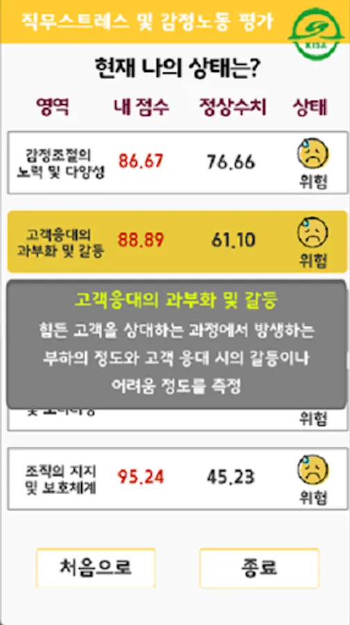 KISA 직무스트레스 및 감정노동 상태평가