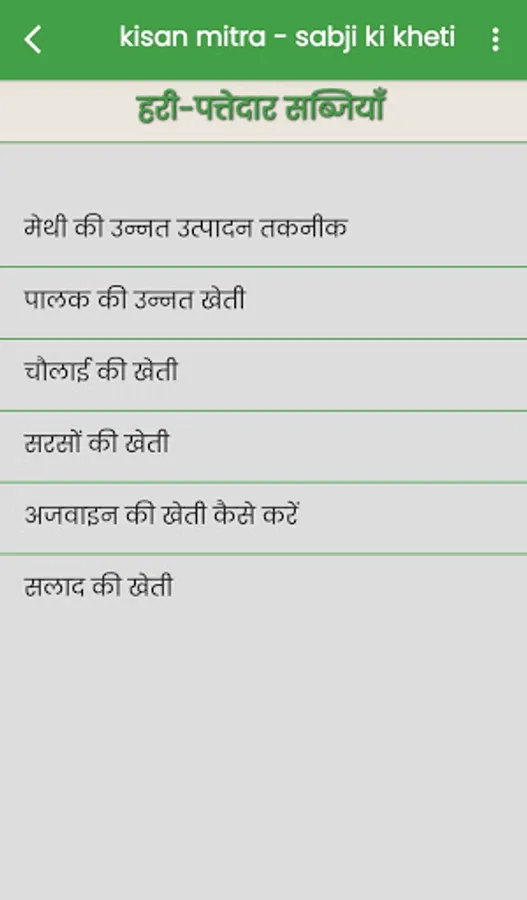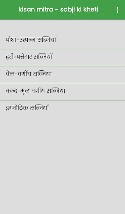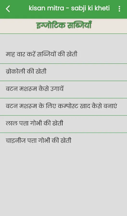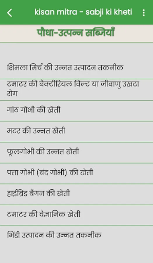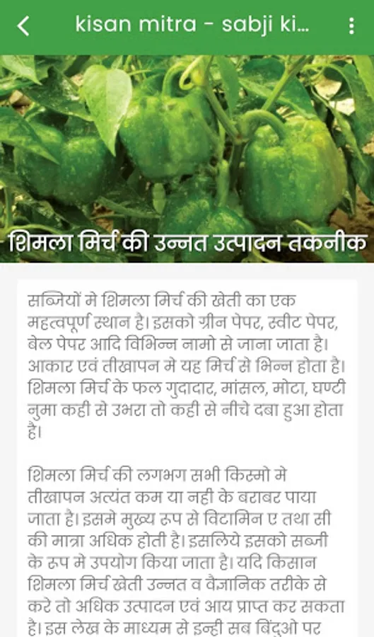 इस "kisan mitra - sabji ki kheti" एप में sabji ki kheti की जानकारी हिन्दी में दी गयी है जिस से आप को sabji ki kheti करने में मदत मिलेगी !