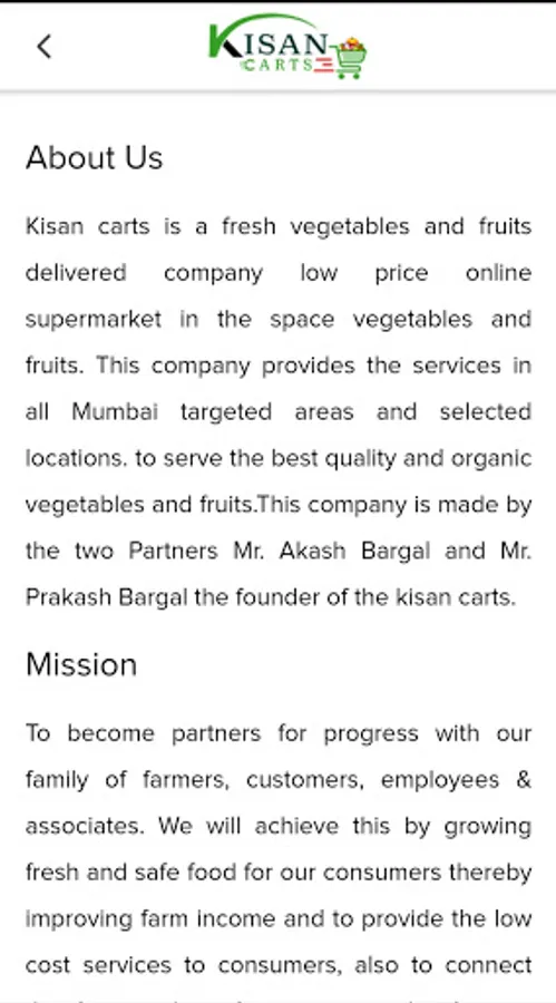 Kisan carts is a fresh vegetables and fruits delivered company low price online supermarket in the space vegetables and fruits. This company provides the services in all Mumbai targeted areas and selected locations. to serve the best quality and organic vegetables and fruits.
