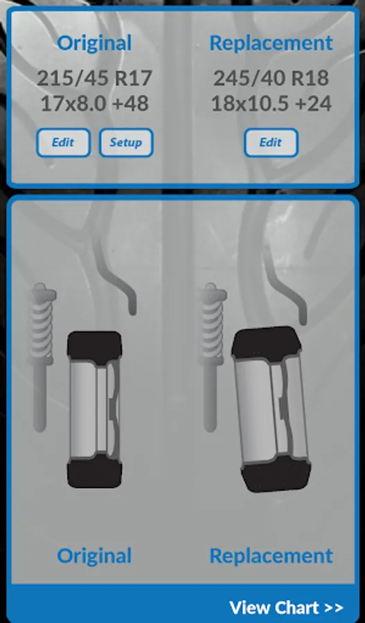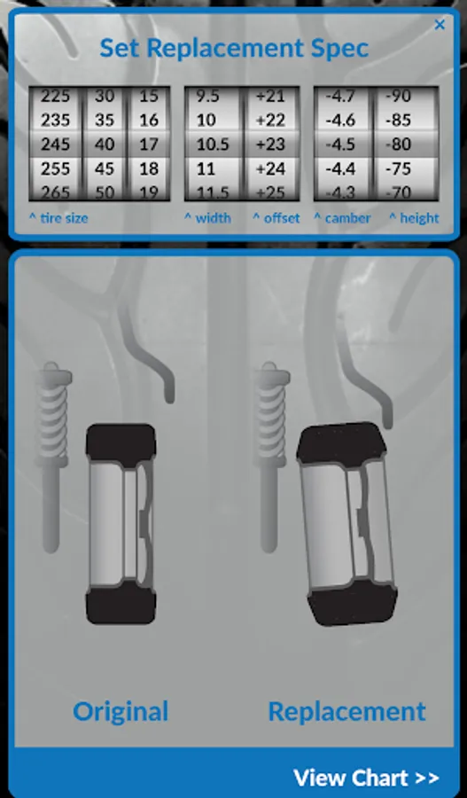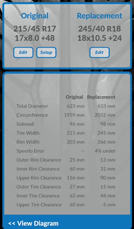 Wheel Tire Calculator with camber helps you determine the best combination of tire size, wheel width, offset and camber for your wheel and tire setup with easy to view animation. This app compares the overall dimension between the two setups, provides the speedometer error and most importantly the changes to the fender and strut clearance with the replacement setup to help you achieve the perfect stance without the headaches. The latest version of Wheel Tire Calculator analyze how camber comes into play with visualization to help to determine the best setup that suits your needs. Wheel Tire Calculator with camber also help you determine the ride height change needed to achieve your wheel fitment goal.