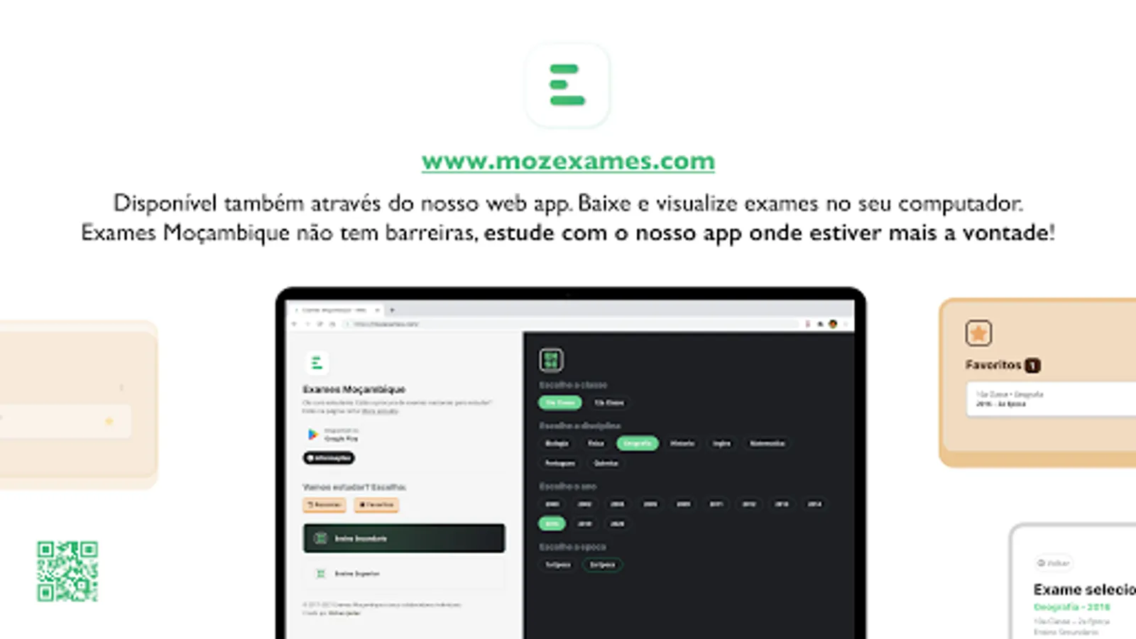 Com este aplicativo grátis, tu tens acesso a vários exames nacionais do Ensino Secundário Geral (10a e 12a) e do Ensino Superior (Exames de Admissão), de todas as disciplinas a todo o momento nas palmas da sua mão!! Baixe já o app, e comece a treinar dentro de instantes. Bons Estudos e uma boa sorte no seu exame!