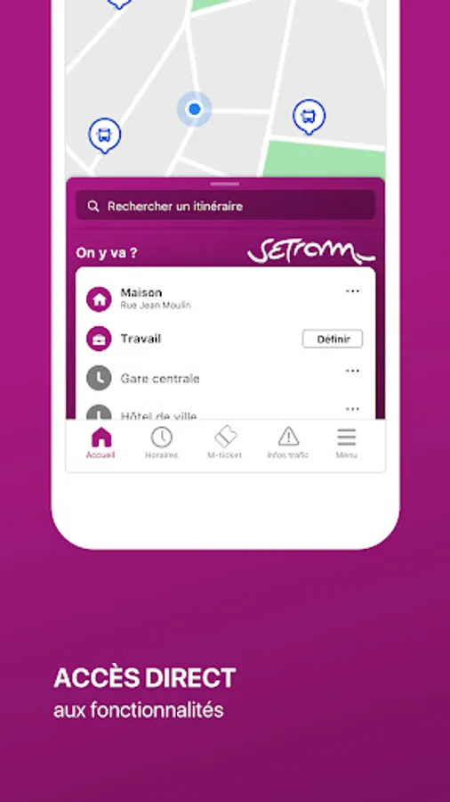 Setram, the official application of the Le Mans Métropole transport network. It accompanies you on a daily basis to facilitate your travels. You can calculate your routes, consult timetables or even plans, check the traffic situation at any time, find out about the transport offer around you and buy your dematerialized transport ticket.