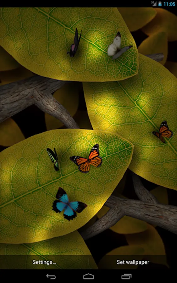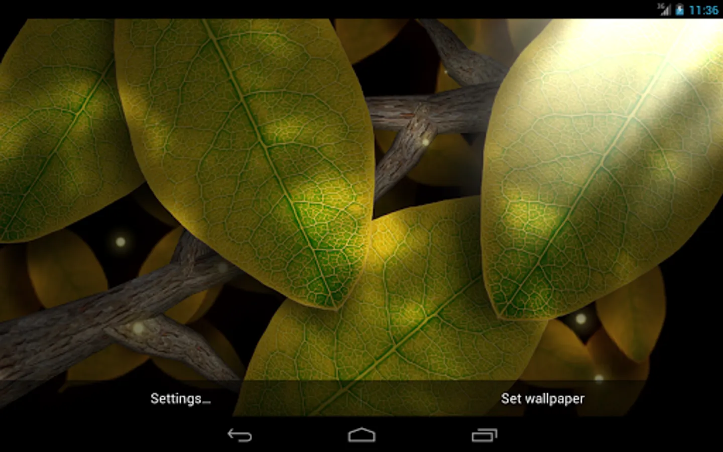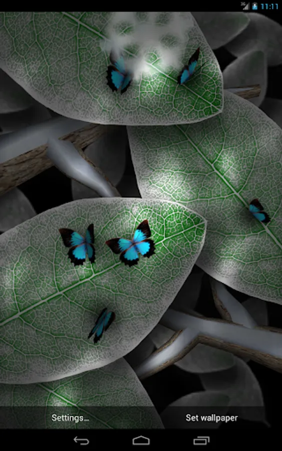 Tap Leaves is a whole new live wallpaper to mimic real life animation. With a tap of finger, forest leaves in Tap Leaves imitate actual leaf movement and bounce in silky smooth animation, in 3D. Tap Leaves also features real life lighting effect, interactive forest life such as fireflies that glow in the dark, butterflies that flutter away when you tap on the leaves they rest on and many more.