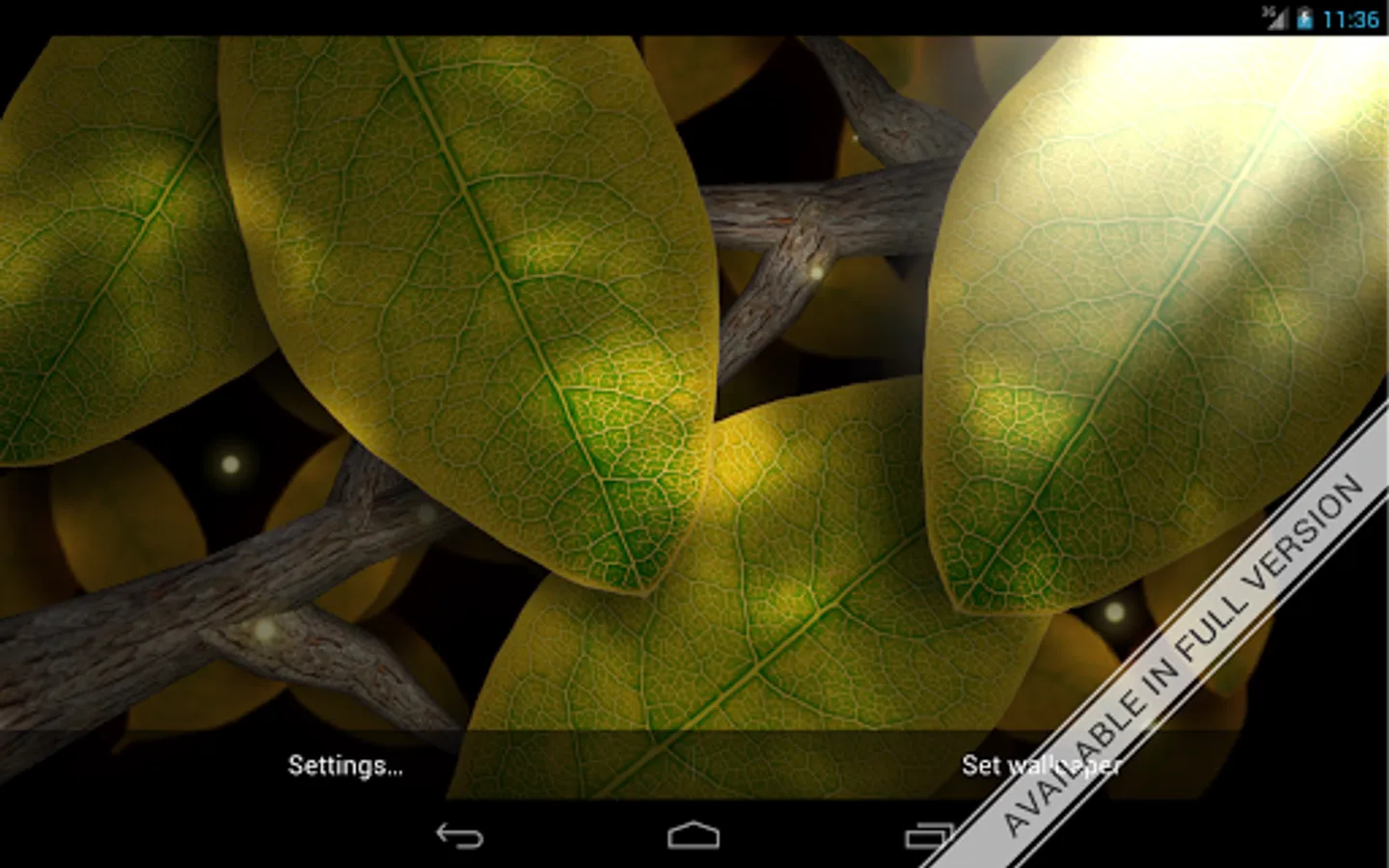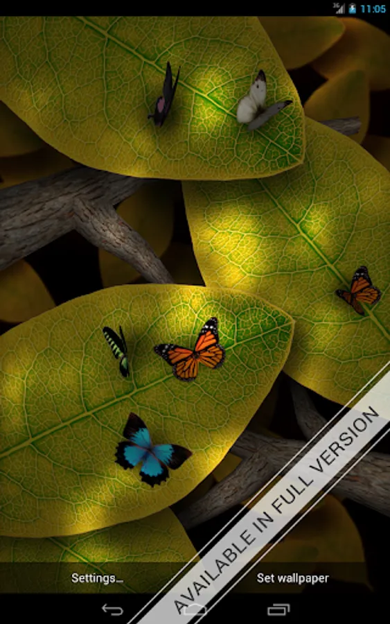 Tap Leaves is a whole new live wallpaper to mimic real life animation. With a tap of finger, forest leaves in Tap Leaves imitate actual leaf movement and bounce in silky smooth animation, in 3D. Tap Leaves also features real life lighting effect, interactive forest life such as fireflies that glow in the dark, butterflies that flutter away when you tap on the leaves they rest on and many more.