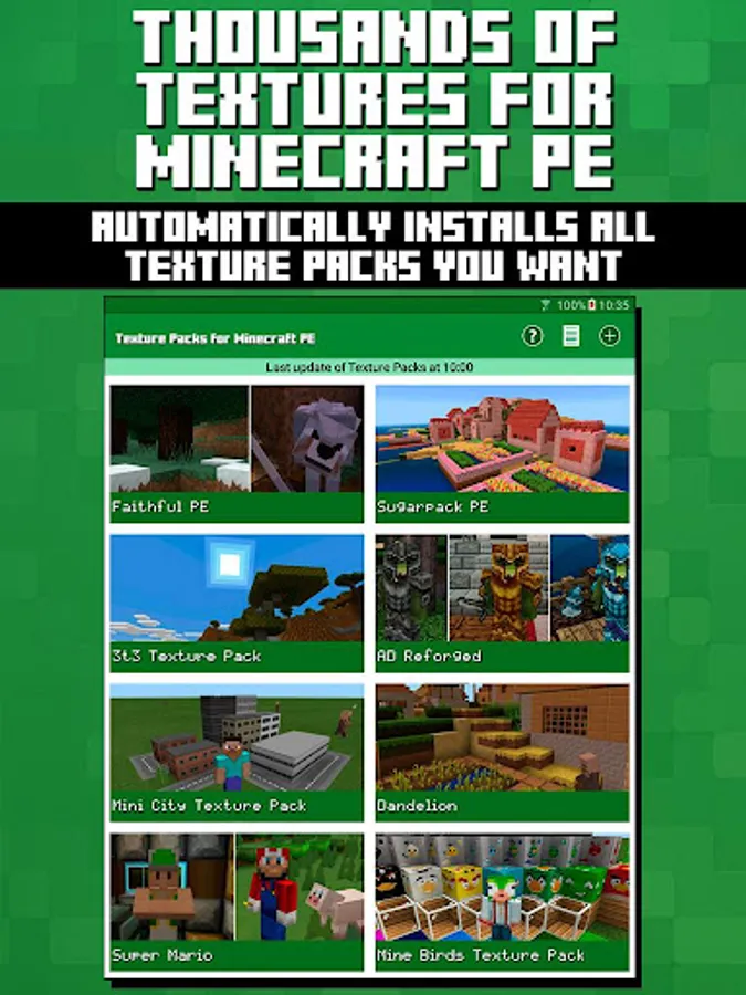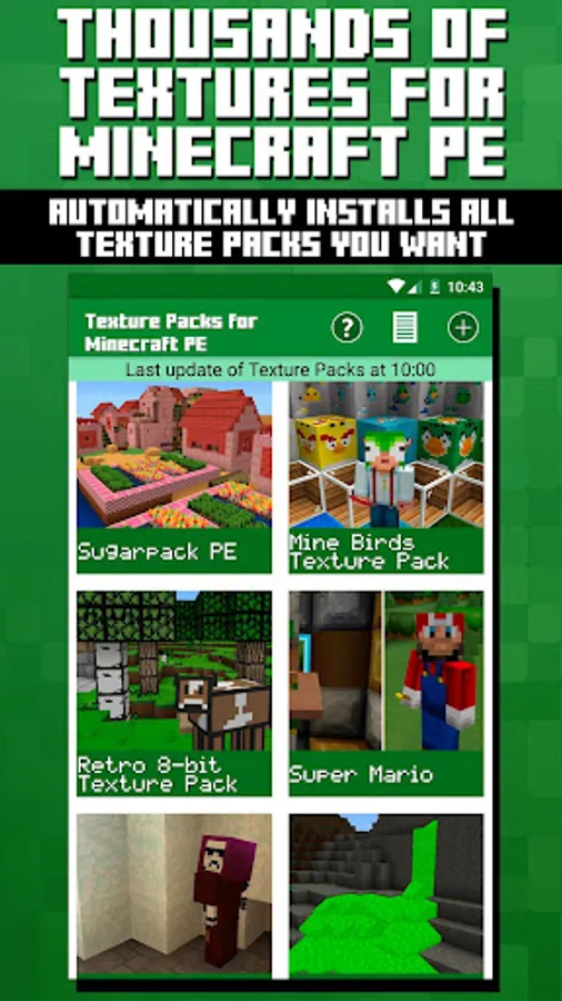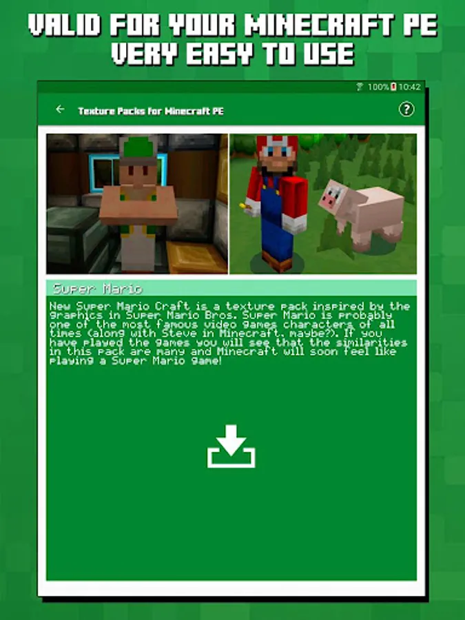 Textures are automatically downloaded and installed, you can play with the textures in Minecraft PE in seconds!