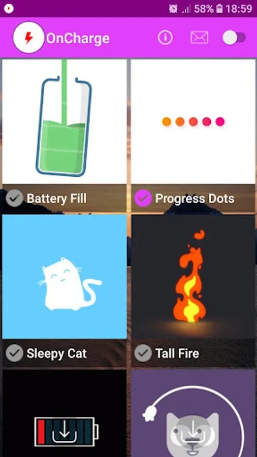 Tired of that ordinary charging message? This app shows you the percentage of battery level alongside fun and beautiful animations that are dismissed as soon as you unplug the charger.