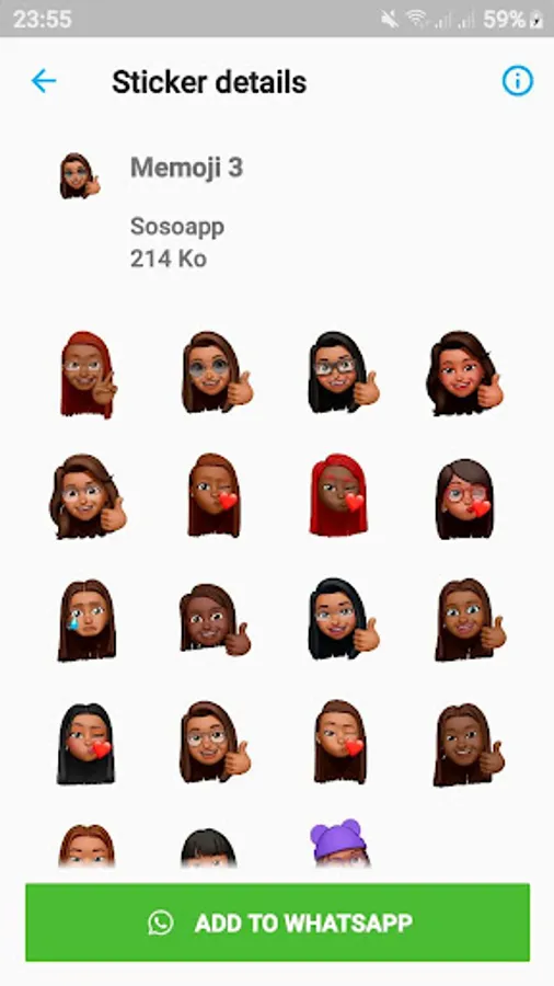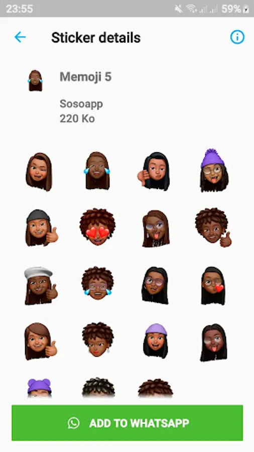 - Add your favorite WAStickerApps memoji black people pack to your Whatsapp