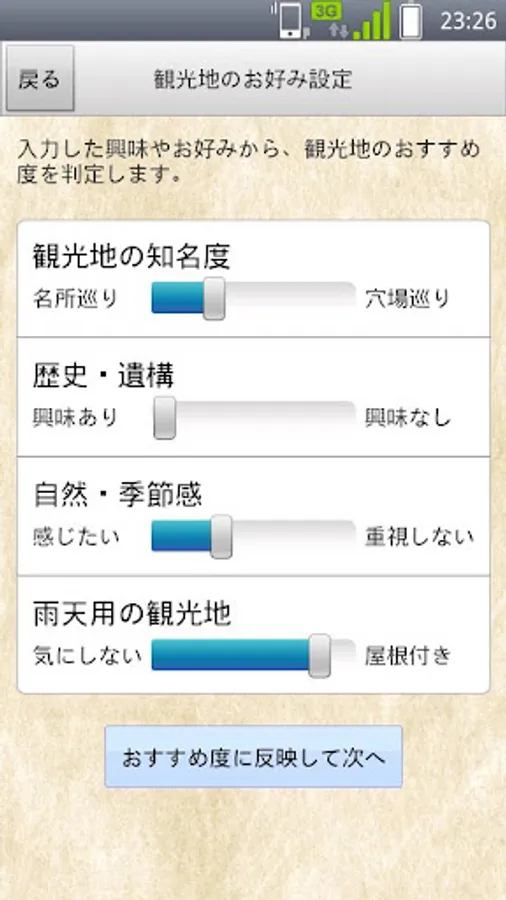 今後、道路事情を考慮した移動や、のんびりまわる、徒歩を避けるなどの好みを反映できるような機能が追加できればと思っています。なお、手軽に観光コースを見つけることが目的のアプリのため、出来上がったコースを直接編集する機能は今のところ予定していません。