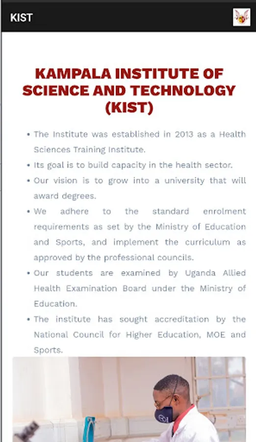 Kampala Institute of Science and Technology (KIST) was established in 2013 as a health Science training institute. Our institute has a well equipped skills laboratory with modern teaching aids for practical purpose.