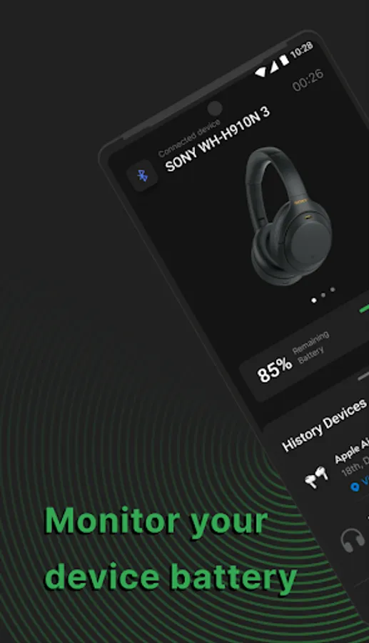 The application also keeps a history of connection and disconnection, so future application versions will predict the time of headphones work.