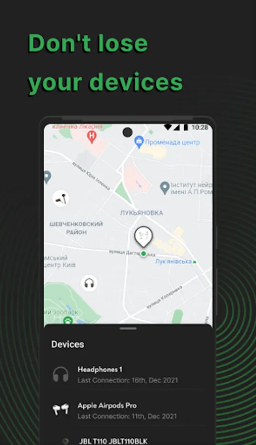Don’t know where have you left your headphones? No problem! With the last location feature you will always know about the last connected/disconnected event place on the map.