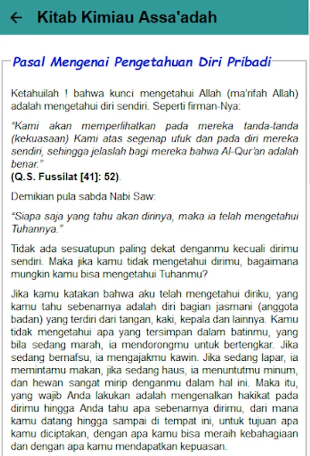 The book "Kimiya 'al-Sa'adah is the 45th work of Imam al-Ghazali. He wrote this book in Parsian language {كميائي سعادات} and has been translated into several languages, including: Arabic, English, Italian, Urdu, etc.